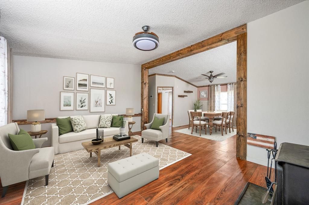 Tucked away on 18.56 acres, this 4-bedroom, 2-bath home offers privacy, updates, and space to enjoy the outdoors. Interior improvements include new trim, flooring, paint, fixtures, toilets, refreshed bathrooms, and a beautifully updated dining room. A professionally installed fireplace creates a charming focal point in the living area. Recent additions include a 2025 covered semi-enclosed outdoor retreat with hot tub, 2025 Samsung Bespoke French-door refrigerator with dual ice maker, generator with whole-house hookup, and a new A/C motor. The home also includes approximately 200 sq.ft. of living space addition that is not reflected in the recorded square footage (Buyer to verify). The property features a water softener and well filtration system, scenic trails, stunning sunrise and sunset views, fruit trees, multiple sheds, and a finished outbuilding perfect for a gym or office. Hobby-farm ready with a fenced animal pen, chicken coop, and loafing shed. If you've been dreaming of quiet, spacious country living, this property is a must-see.