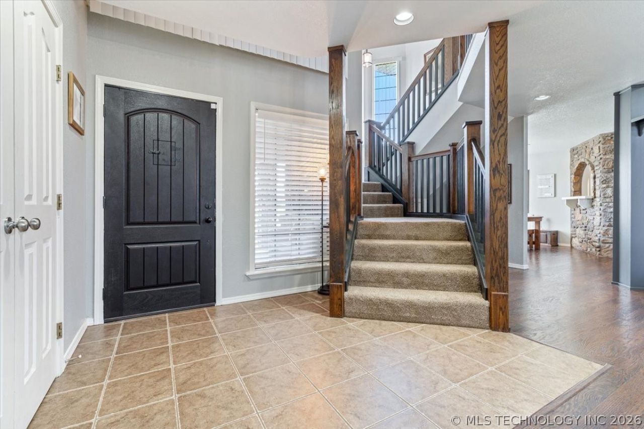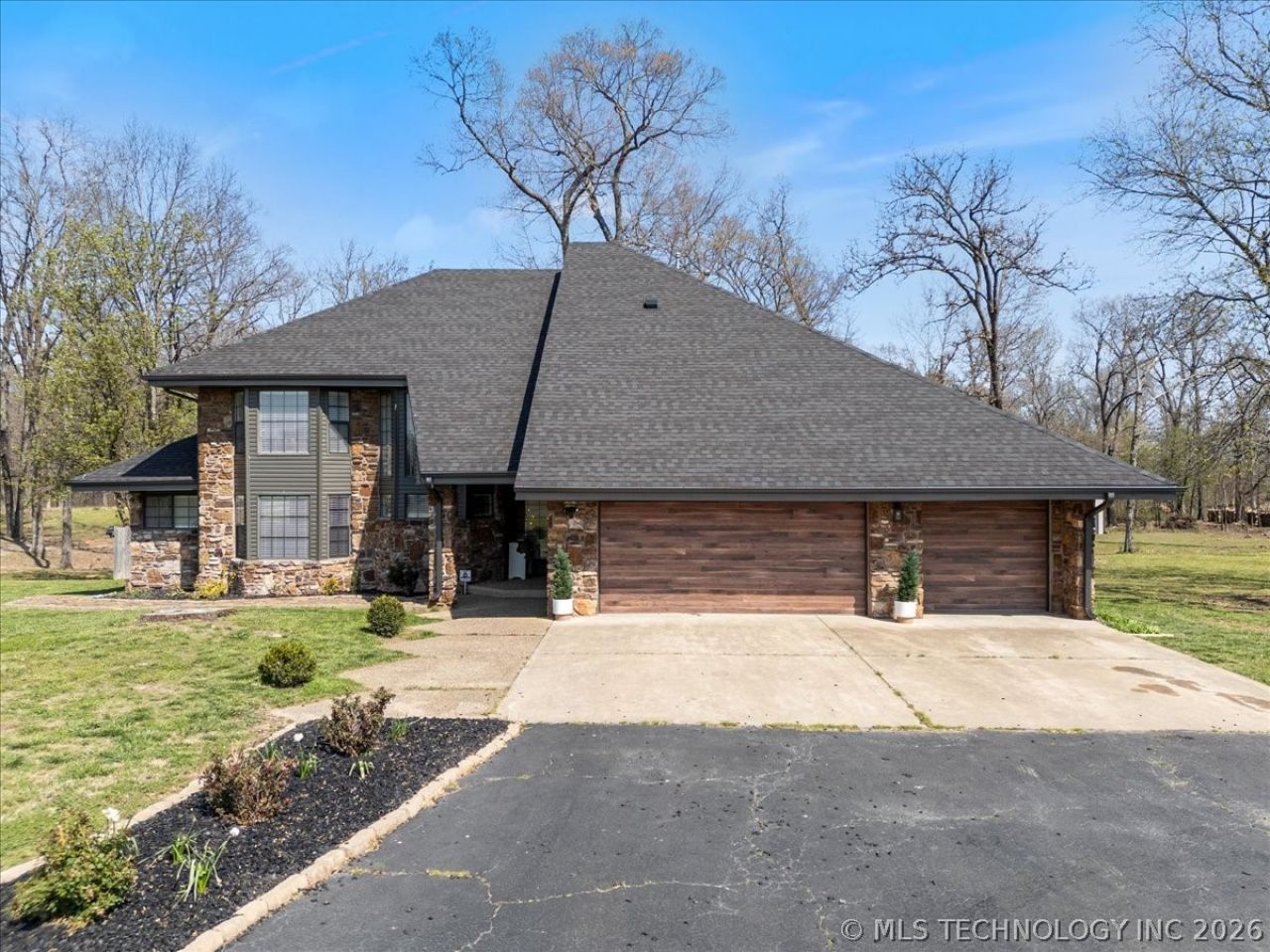Estate style living in this tastefully updated home on 10 acres! This stunning 3-bed, 3-bath home offers the perfect blend of space, comfort, and functionality. Step inside to a spacious living area filled with natural light and native stone-ideal for both relaxing and entertaining. The kitchen features an abundance of cabinet space, a cozy eating area, plus a separate dining room for gatherings and special occasions. A lower-level flex room currently used as a bedroom is also ideal for office or guest space. The large primary suite has an electric fireplace along with a private bath and it's own balcony, perfect for enjoying peaceful mornings or evenings. Two additional bedrooms feature walk-in closets, offering plenty of storage. Outside, a large deck overlooks your property, giving you endless opportunities for outdoor living. A 3-car garage provides ample space for vehicles, storage, or hobbies and the walk-in shower is perfect for cleanup! Minutes to Stilwell amenities or head west and hit the lake with ease!
